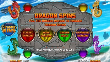 Dragon Wins slot machine is brimming with Bonus features. First off, in all four corners of the reel set, you will notice four animated dragons with a meter. All you have to do to make the meter rise is create a winning combo featuring the dragon that corresponds to one of the meters.
