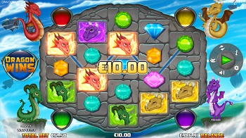 Speaking of visuals, Dragon Wins slot features cartoon-style graphics, with the reels being set against the vast blue sky, to accentuate the dreamy air of the fantasy-themed game. The stone plaque reels are what will instantly capture your attention, with an unconventional 3x4x5x4x3 grid format.