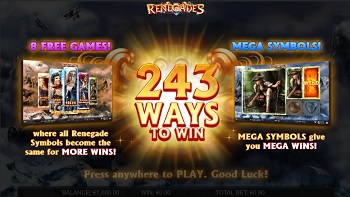 All symbols, from the lowest paying to the highest, can be a 1×1, 2×2 or a 3×3 icon, and at a certain size, they can trigger a small bonus which has the chance to enhance your winnings. And speaking of special feature, there’s one more you should keep an eye out – with three or more Scatters, you can win 8 free spins, which comes with a very powerful benefit of having only one renegade on the reels, rather than five, which is a more massive change than you think.