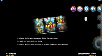 These Super Reels are used at random, and they can be obtained at any point in the main game. When the feature triggers, you will have 1 to 5 reels transformed. The new Super Reels have the usual symbols, to which they add wilds as well.